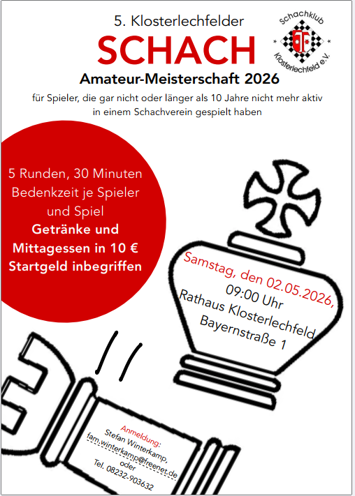 Im Heimspiel gegen die II. Mannschaft aus Buchloe spielten zunächst Rayan Schwarz und Stefan Winterkamp remis, ehe Peter Fischer mit einer sehenswerten Kombination in einem Schwerfigurenendspiel siegte. Die Führung wurde von Erik Lehmann und Josef Starkmann mit technisch gekonnten Endspielen uneinholbar ausgebaut. Den Schlusspunkt setzte Anton Fischer mit einem Unentschieden in einem Endspiel mit ungleichfarbigen Läufern.