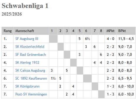 Zuvor hatte Lorenz an Brett 5 Remis eine aussichtsreiche Kombination getätigt, nur war für ihn die daraus folgende Materialverteilung ungünstig, auch wenn der gegnerische König in Mitte festgehalten worden war. Lorenz entschied sich um Abtausch der Damen, was aber im Endspiel für die Materialverteilung noch ungünstiger war: er spielte mit zwei Türmen gegen einen Turm und zwei Läufern. Es kam, wie’s kommen musste: Das Endspiel und damit die Partie ging verloren.